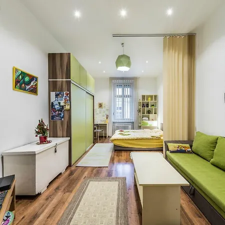 El Green Thea Apartment / Free Parking ofrece comodidades de autoservicio, como una cocina completa y una una zona de comedor para mayor comodidad de los huéspedes. La estación de metro Blaha Lujza tér está a una distancia de 350 metros del apartamento.